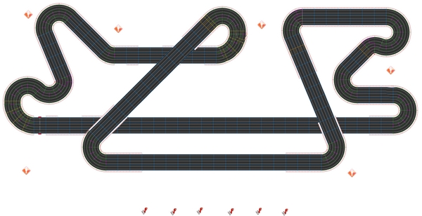 Tipologia: NINCO N° Corsie: 6 bianca, blu, arancione, verde, gialla, rossa Sviluppo: 66,5 metri per ogni corsia Rettilineo pił lungo: 12.8m Record sul giro: 11,28 gara GT modello Mosler NSR pilota Cavanna C.(12V); in prova 10,12 (sempre Cavanna) Alimentazione: regolabile 6-15 volt max 20 A (con sei inserzioni) Sistema di cronometraggio: BISTBOX (DS 300 pro + PC Lap Counter per backup)